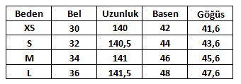 Ürün Beden Tablosu :