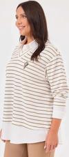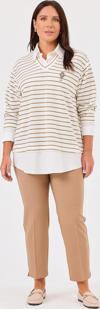 Detay: Bu şık sweatshirt, kış aylarında sıcaklık ve konfor sağlamak üzere tasarlanmıştır. Basen altı uzunluğu ve gömlek yakası ile zarif ve modern bir görünüm sunar. Düşük omuz kesimi ve çizgili tasarımı ile şıklığınızı ön plana çıkarır. Büyük beden yapısı sayesinde her türlü vücut tipine uyum sağlar ve rahatlık sunar. Ekstra aksesuar detayları ile dikkat çeken bu sweatshirt, günlük kullanım için idealdir. Yüksek kaliteli malzemesi ile gün boyu konfor sunan bu sweatshirt, gardırobunuzun vazgeçilmez bir parçası olacak. Kış aylarında stilinizi ve rahatlığınızı ön plana çıkarın;