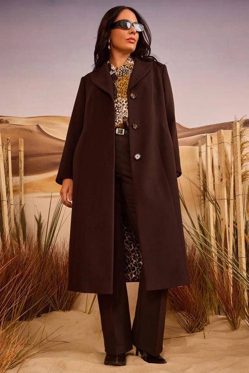 Detay: Bu kaban modeli, düz dokuma yün kumaşıyla hem sıcak tutar hem de şık bir görünüm sunar. Midi boyu ve regular kesimiyle dengeli bir siluet oluşturur. Kruvaze yaka ve düğmeli kapama detayı klasik bir duruş kazandırırken, takma uzun kollarla mevsim geçişlerine uyum sağlar. Tarz sahibi kombinler için ideal bir dış giyim parçasıdır.;