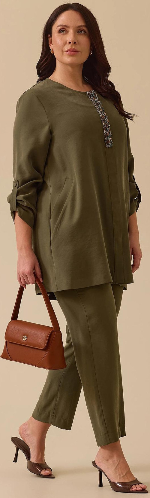 Detay: Bu şık boncuk detaylı kap-tunik, uzun kollu ve kolu katlama detaylı tasarımı ile dikkat çekiyor. Uzun yapısı sayesinde hem şıklık hem de rahatlık sunar. Boncuk detayları, tunikte zarif ve sofistike bir dokunuş oluştururken, günlük ve özel günlerde rahatlıkla kullanabileceğiniz şık bir seçenek haline getirir. Bu kap-tunik ile stilinizi öne çıkararak modanın keyfini çıkarın;
