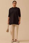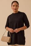 Detay: Düz örme kumaştan üretilmiş bu relax kesim tunik, basen boyu ve düşük kol tasarımıyla günlük stilinize konforlu bir dokunuş katıyor. Sıfır yaka detayıyla sade ve modern bir görünüm sunan model, uzun kol yapısıyla mevsim geçişlerinde ideal bir tercih oluyor. Esnek örme dokusu sayesinde hem rahatlık hem de şıklığı bir arada sunan bu tunik, zamansız gardıropların vazgeçilmez parçası haline geliyor;