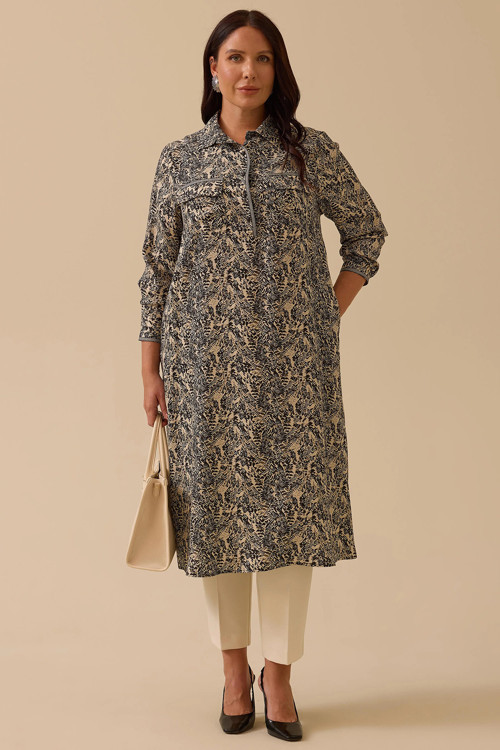 Detay: Desenli dokuma kumaştan üretilmiş bu şık elbise, relax kesimi ve basen altı boyuyla hem konforlu hem de zarif bir siluet sunuyor. Gömlek yaka ve takma kol detaylarıyla klasik şıklığı modern bir çizgiyle buluşturan model, uzun kol yapısı ve düğmeli kapama özelliğiyle estetik ve pratik bir kullanım sağlıyor. Normal bel kesimiyle vücuda dengeli oturan bu elbise, günlük stilinizden özel davetlere kadar stil sahibi bir görünüm arayanlar için ideal bir tercih oluyor;