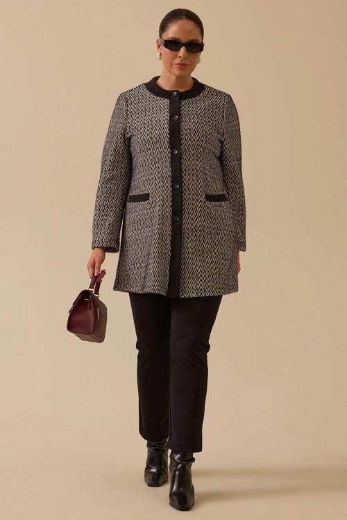 Detay: Geometrik desenli triko kumaştan üretilmiş bu astarsız günlük ceket, basen altı boyu ve yuvarlak yaka tasarımıyla modern ve rahat bir stil sunuyor. Uzun kol yapısı ve düğmeli kapama özelliğiyle hem pratik hem de şık bir kullanım sağlayan model, cepli detayıyla fonksiyonelliği artırıyor. Triko dokusunun yumuşaklığı ve geometrik desenin enerjisiyle günlük kombinlere dinamik bir dokunuş katıyor;