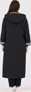 Gala-Xi Galaxi Kadın Büyük Beden Desenli Kapüşonlu Pardösü 4002 Siyah