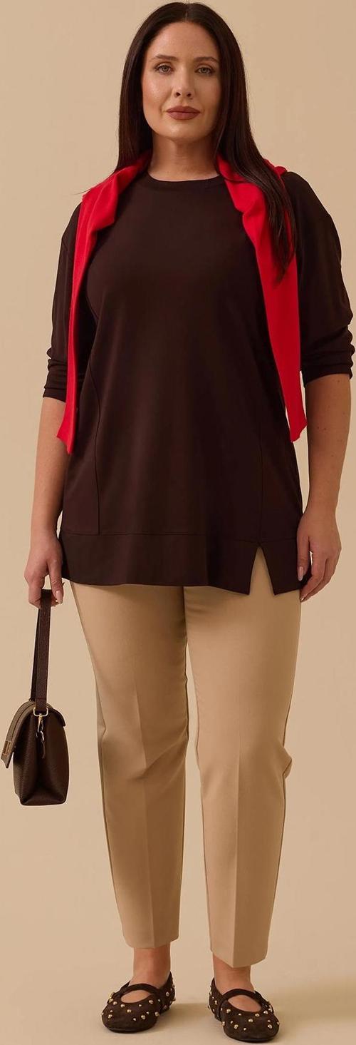 Detay: Düz örme kumaştan üretilmiş, relax kesim ve yuvarlak yaka tasarımıyla günlük şıklığı yansıtan bu tunik, uzun kol ve basen altı boyuyla konforlu bir kullanım sunar. Normal bel formu ve kapamasız yapısı sayesinde sade, modern ve rahat bir siluet oluşturur. Günlük kombinlerden ofis stiline kadar geniş bir kullanım alanı sağlayan yuvarlak yaka uzun kollu tunik, gardırobunuzun vazgeçilmez parçalarından biri olmaya adaydır;