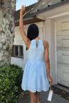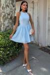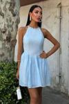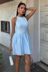 Mavi renkteki bu mini elbise, her mevsim şıklığınızı tamamlar.