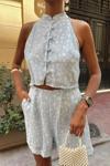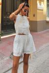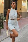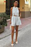 Kolsuz tasarımı ile sıcak yaz günlerinde serinlik sağlar geniş paça şortu ise hareket özgürlüğü sunar.
