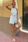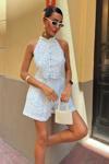 Rahat ve şık bir yaz kombini için ideal, düz desenli Mavi yelek şort takım.