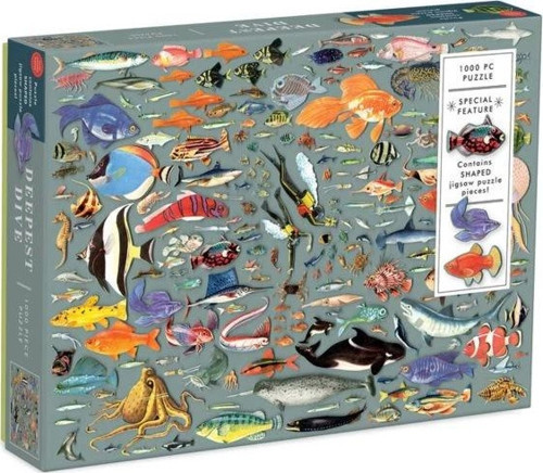 MUHTEŞEM DETAYLAR: Bu kusursuz uyumlu puzzle, ekstra meydan okuma ve eğlence için balık ve deniz canlıları şeklinde kalıp kesimli 20 puzzle parçası içerir. Su altı çizimi, sanatçı Ben Gilles'e ait.