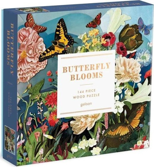 144 PARÇA AHŞAP PUZZLE: Galison'dan Kelebekli Çiçekler adlı puzzle, canlı sanat eserlerine sahip, benzersiz bir şekilde zorlayıcı bir üründür. Kutu ayrıca referans için sanatçı ve resim hakkında bir ek içerir.