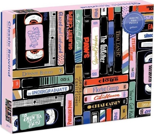 MUHTEŞEM DETAYLAR: Bu kusursuz uyumlu puzzle, esprili film başlıkları içeren eski VHS kaset yığınlarını içerir. Parlak mavi folyo detaylarıyla süslenmiş bu eser, puzzle severler için ideal bir hediyedir.