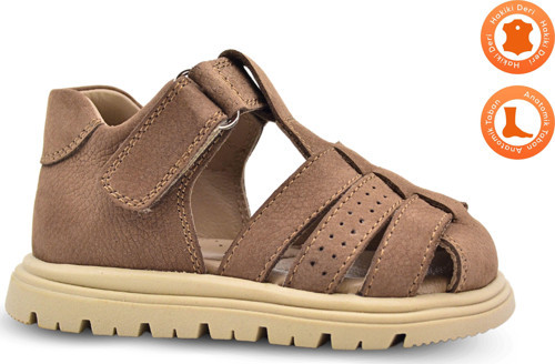 Galler Hakiki Deri Tek Cırtlı Arkası Kapalı Unisex Bebek Sandalet Kum Rengi