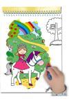 Kalem siyah beyaz sayfaların üzerine sürüldüğünde rengârenk resimler ortaya çıkar.