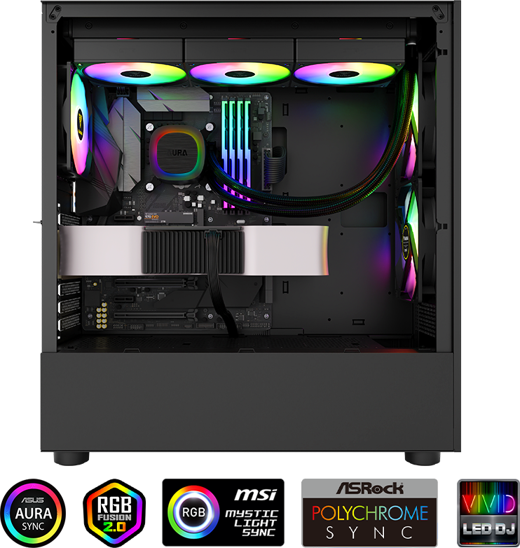 | ARGB PARLAKLIK Takılı bir anahtar konnektörü ile 30 dahili aydınlatma efekti arasında geçiş yapın veya efektleri 5V 3-Pin adreslenebilir RGB başlığına sahip herhangi bir anakartla senkronize edin. | ![]() |