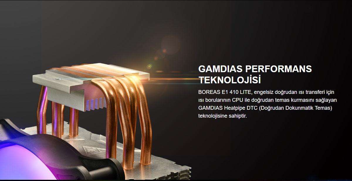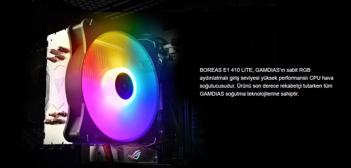 Gamdias Gamdıas Boreas E1-410 Lite, Argb, 120mm, Cpu Kule Tipi Hava Soğutma, Doğrudan Temas Teknolojisine S