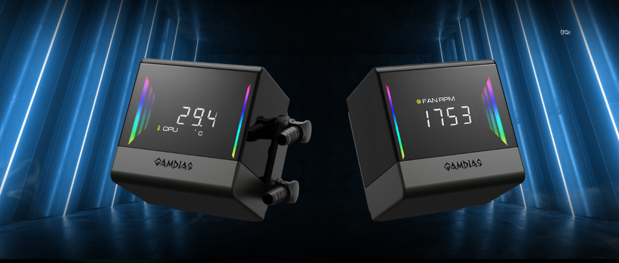 | SONSUZ AYNALI DİJİTAL EKRAN Su bloğuna entegre edilmiş dijital ekran, gerçek zamanlı CPU sıcaklığını ve fan hızını kolayca göstererek sistem durumunun zahmetsizce izlenmesini sağlar. Ekranın etrafında ise görsel çekiciliği artıran iki RGB sonsuzluk aynası bulunur. | |