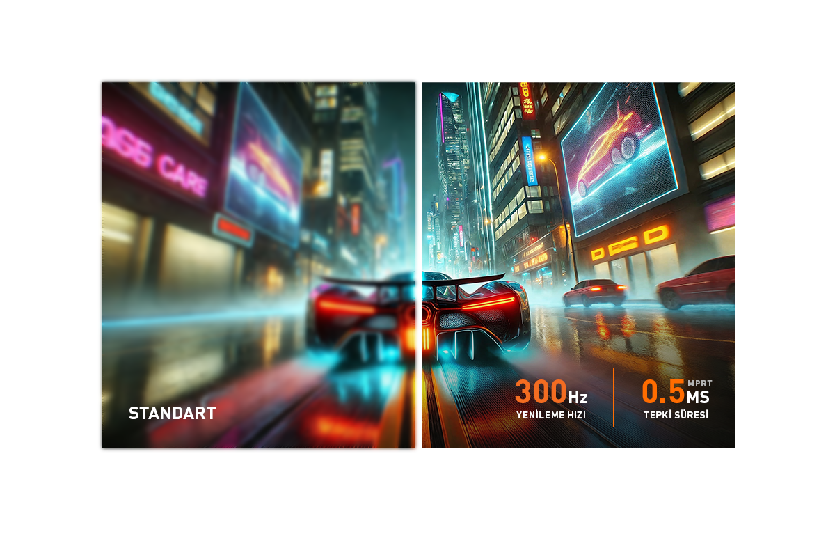 300Hz yenileme hızı ve 0.5ms (MPRT) tepki süresi gecikmeyi ve hareket bulanıklığını en aza indirir süper hızlı akıcı oyun performansı sunar.