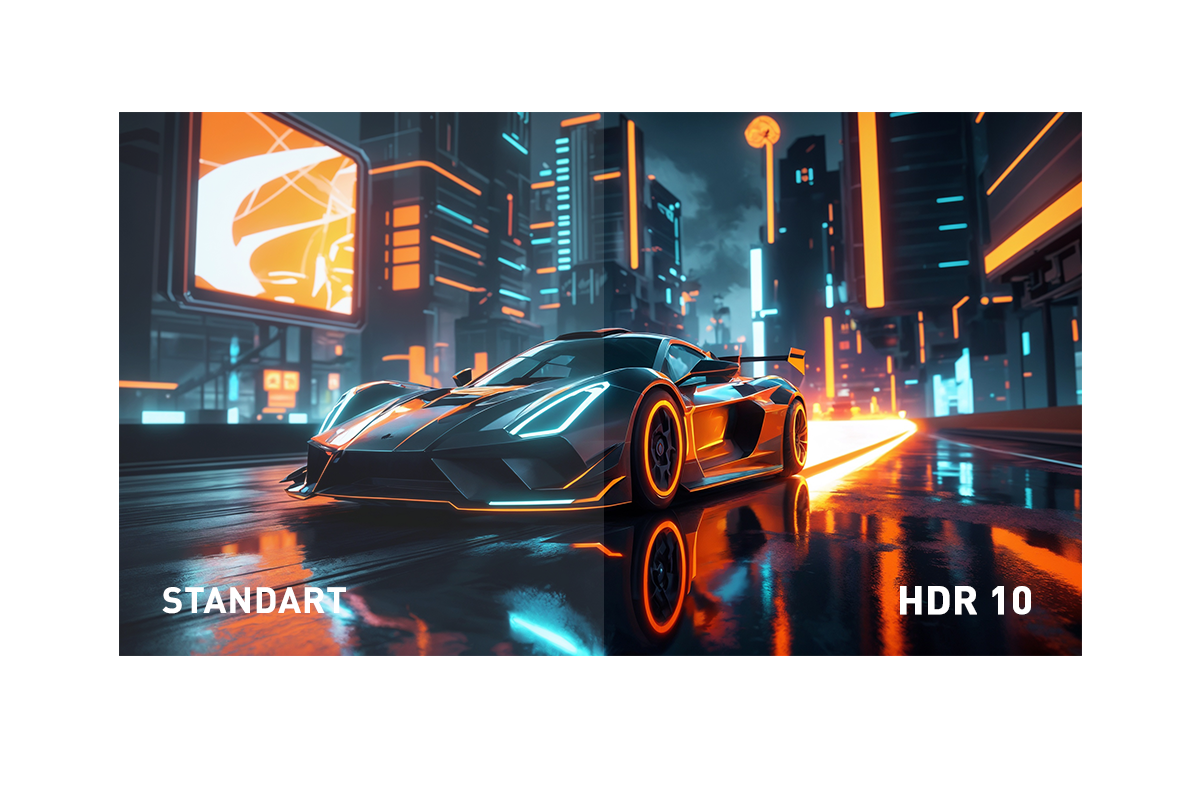 HDR 10 bir görüntünün daha zengin, daha renkli görünmesini sağlar. Loş ışıklı veya parlak dış mekan sahnelerinde daha fazla detayı görmenize olanak tanırken, sahnenin hem gölgeli hem de açık tonlu noktalarındaki ayrıntıyı artırır. Sonuç olarak daha fazla renk, kontrast ve çok daha fazla parlaklık sunar.