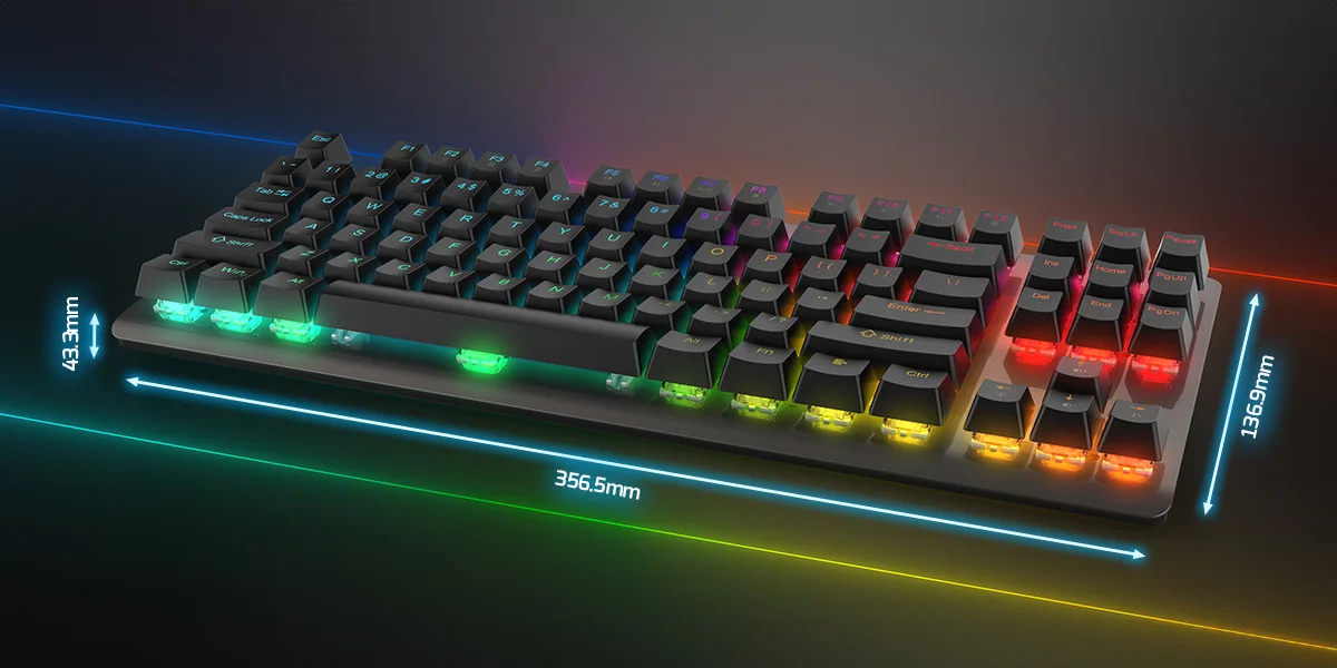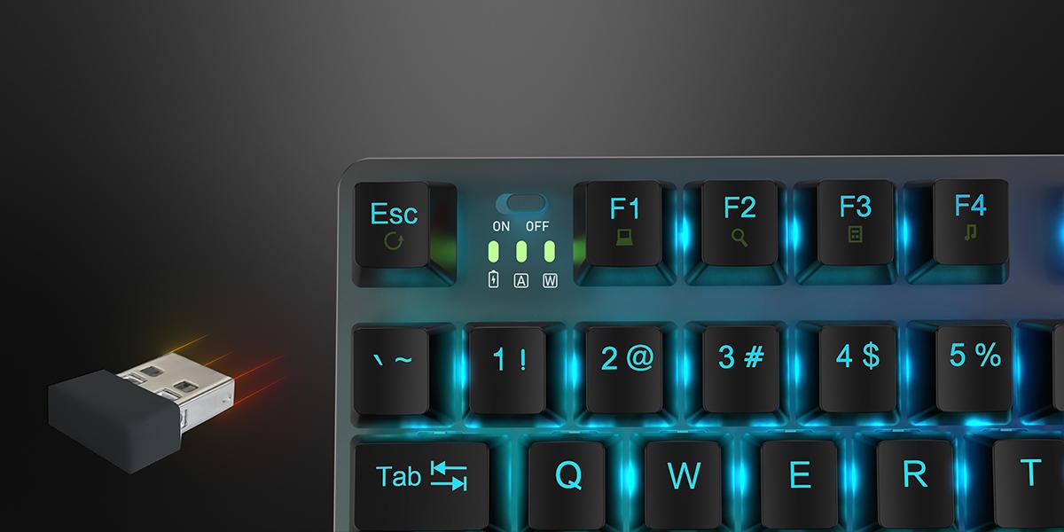 GamePower Eva 7 60M Mekanik Kablolu, 2.4Ghz, Bluetooth 3 Mod Blue Switch İngilizce Q 88 Tuş USB RGB Gaming Klavye