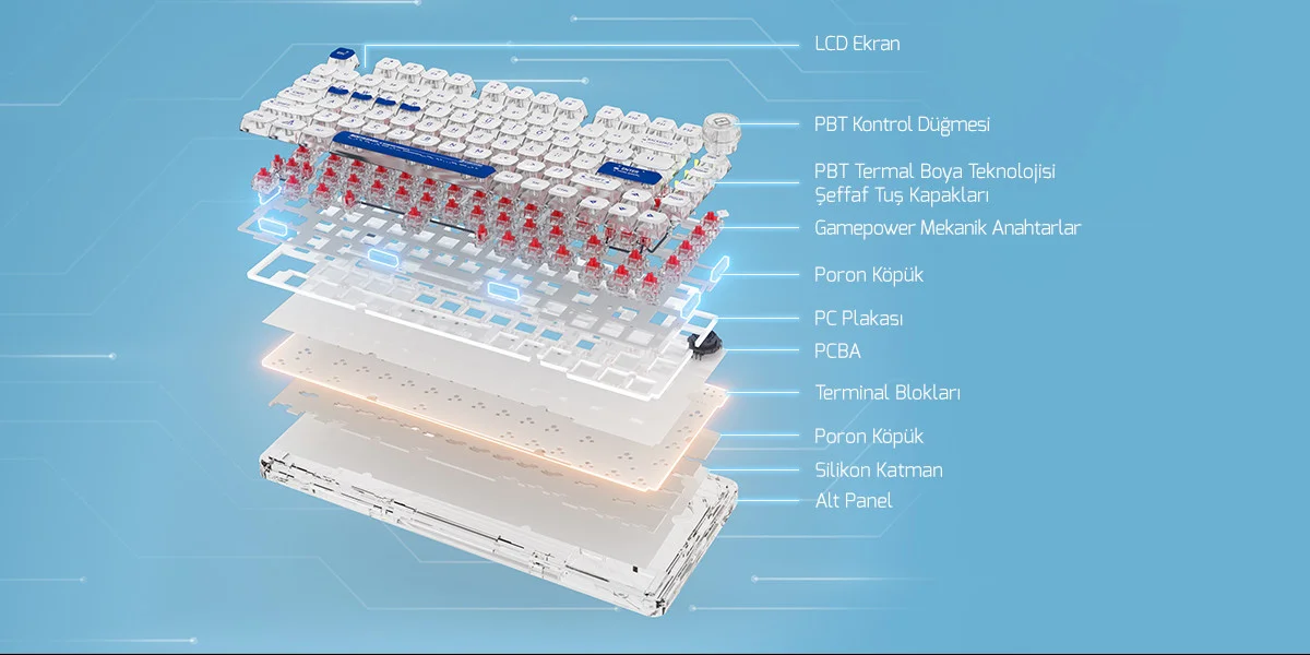 Gamepower Gasket Pro RGB Wireless/Bluetooth/Kablolu Mekanik Red Switch İngilizce Q Gasket Gaming Klavye