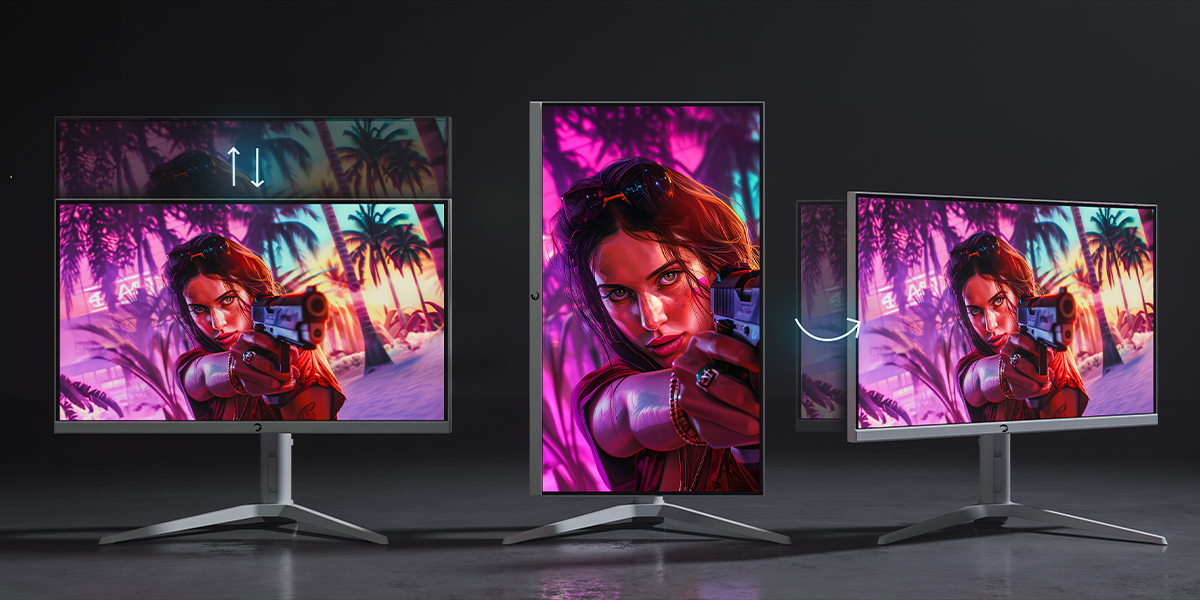 Monitörün yüksekliğini, döndürmesini, eğimini ve pivotunu kolayca ayarlayarak kişisel konforunuzu en üst düzeye çıkarın.