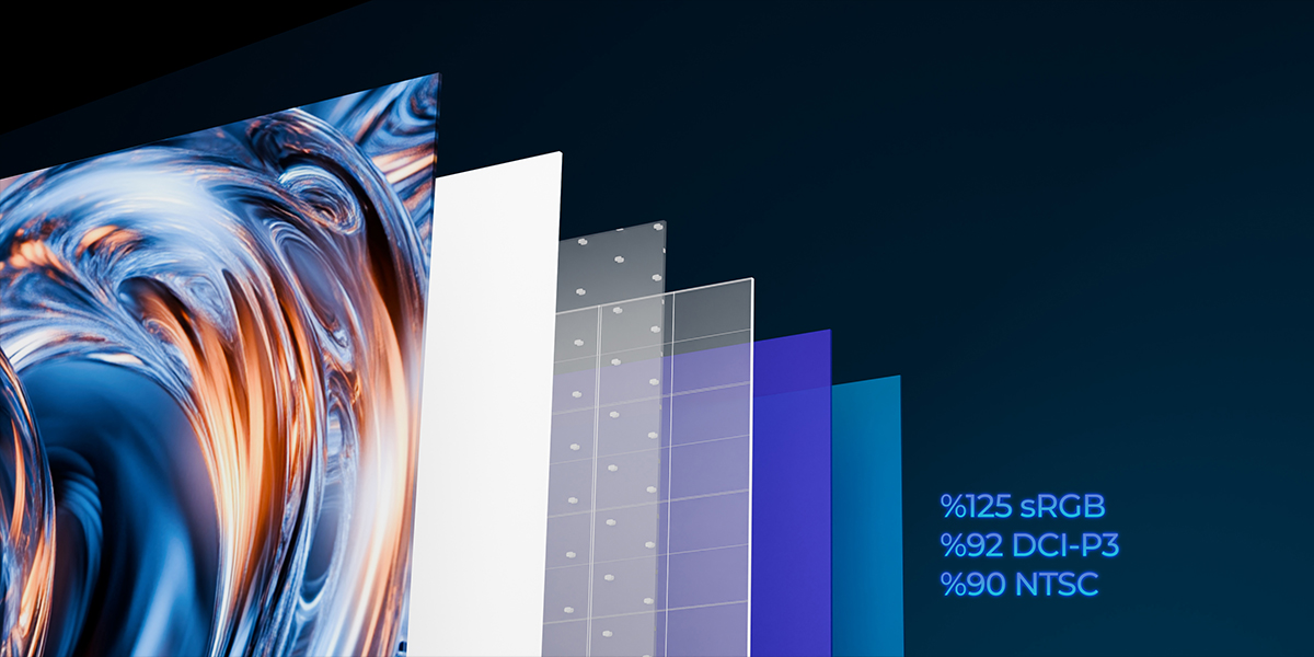 125% sRGB, %92 DCI-P3 ve %90 NTSC desteğiyle zengin ve doğru renkler. Her sahnede etkileyici ve canlı detaylar sunar.