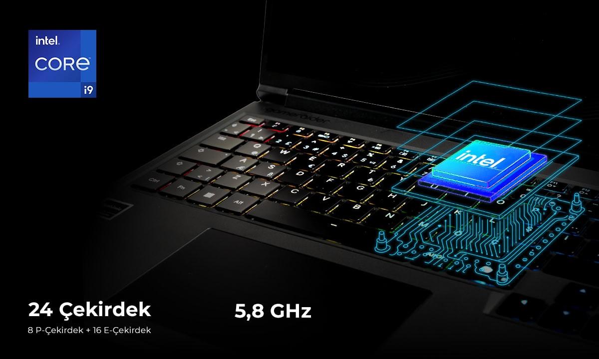 Oyuncular İçin Zirve PerformansOyun performansının güç merkeziyle tanışın: 24 çekirdek (8 Performance + 16 Efficient) ve 32 iş parçacığı ile donatılmış Intel® Core™ i9-14900HX, en zorlu oyunlarda bile sınırları zorlamak için tasarlandı. 5.8 GHz’e varan Turbo frekansı sayesinde olağanüstü hız, düşük gecikme ve yüksek tepki süresi sunar. Çoklu görevlerde akıcı bir deneyim, oyunlarda ise maksimum kare hızı arayanlar için ideal bir işlemci. Bu güçlü yapı, rekabetçi oyuncular ve profesyonel içerik üreticileri için kusursuz dengeyi sunarak gerçek masaüstü sınıfı performansı taşınabilir sistemlere getiriyor.