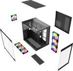Kasanın ön paneli, temiz ve modern bir görünüme sahiptir, herhangi bir düzensiz hava akışını engellemeyen yapısı sayesinde sistem bileşenleriniz için ideal soğutma performansı sunar. Tuş kontrollü RGB fanlar ile kullanıcılar istedikleri ışık efektlerini kolayca ayarlayabilir, sistemin atmosferini kendi tercihlerine göre şekillendirebilirler.