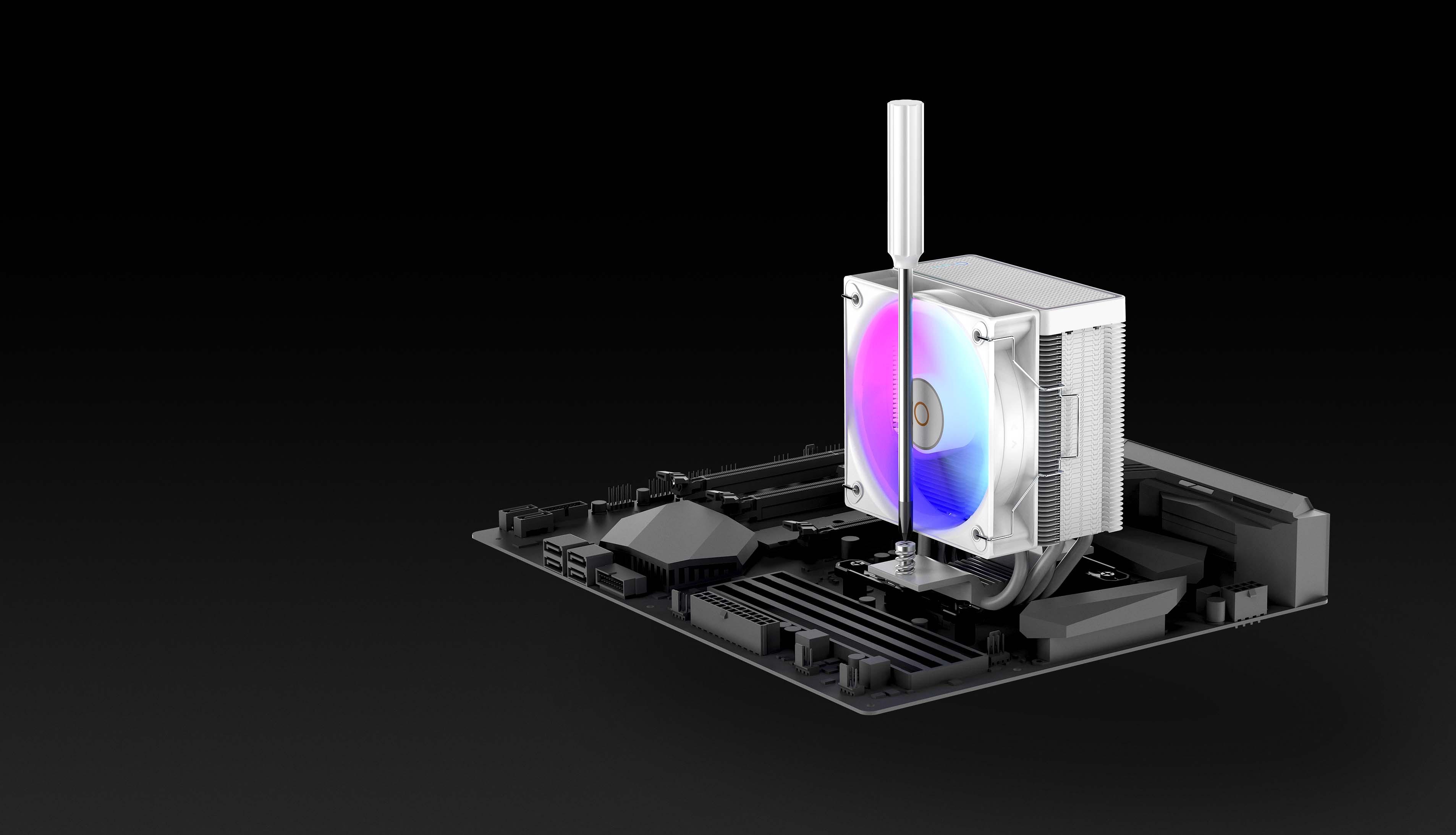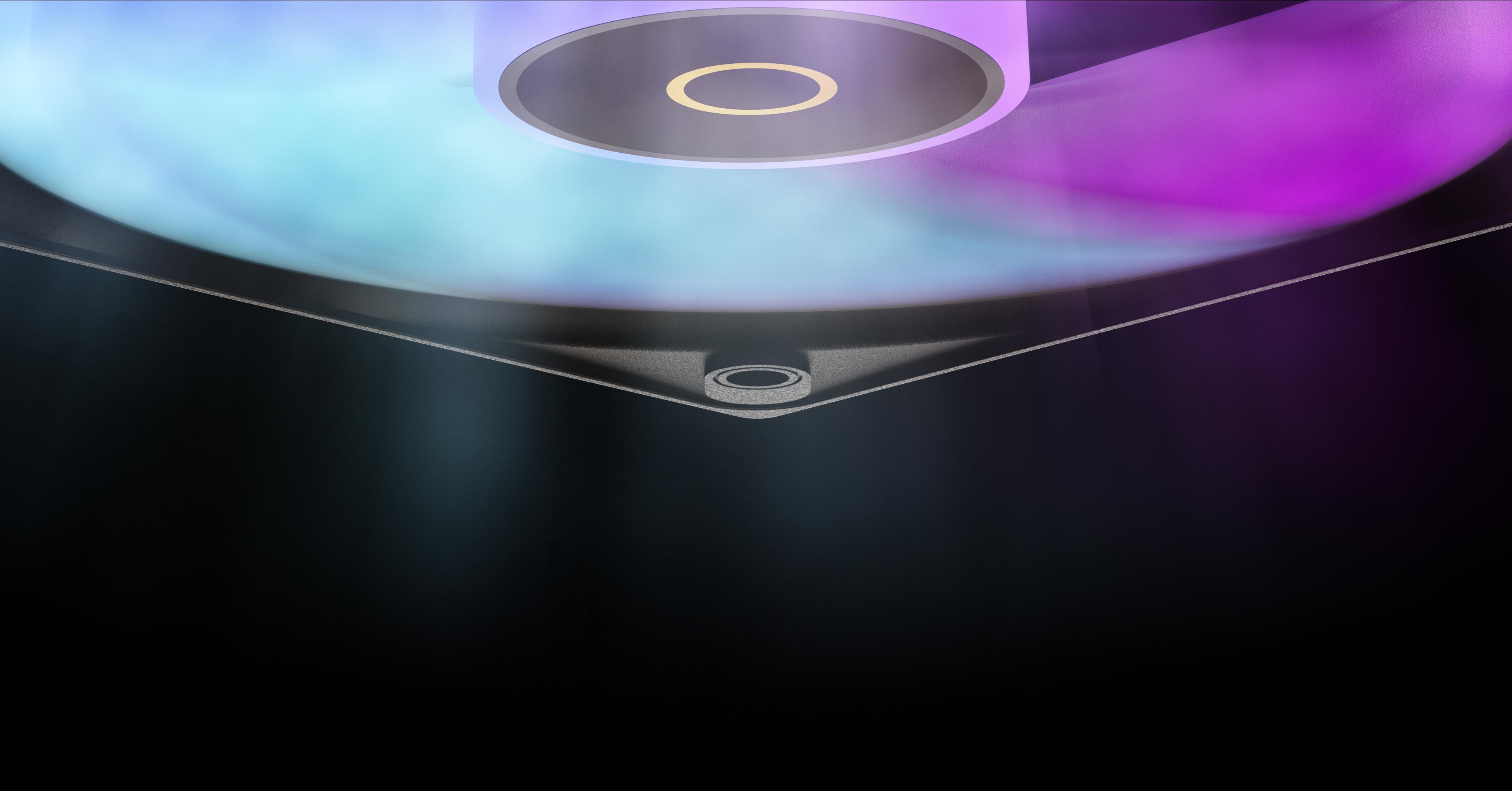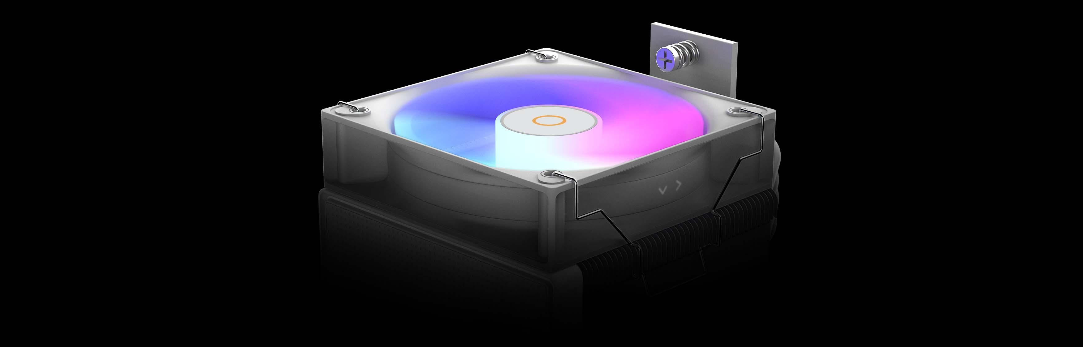 Hava akışı için optimize edilmiş 100 mm'lik yüksek performanslı fanlarla donatılmış olup , güçlü hava akışı ve kompakt kule alanının verimli kullanımı sağlayarak çekirdek ısısını sessiz ve hızlı bir şekilde giderir.