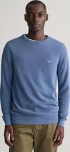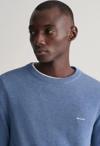 Hafif pamuk pikeden üretilmiş bisiklet yaka kazak, sade ama çok yönlü bir tasarıma sahiptir. Regular fit bir kesime sahip olup, göğüste klasik GANT logosu işlenmiştir. Özel olarak tasarlanmış örme kazak, gardırobunuzun en çok sevilen parçalarından biri haline gelmeye adaydır.