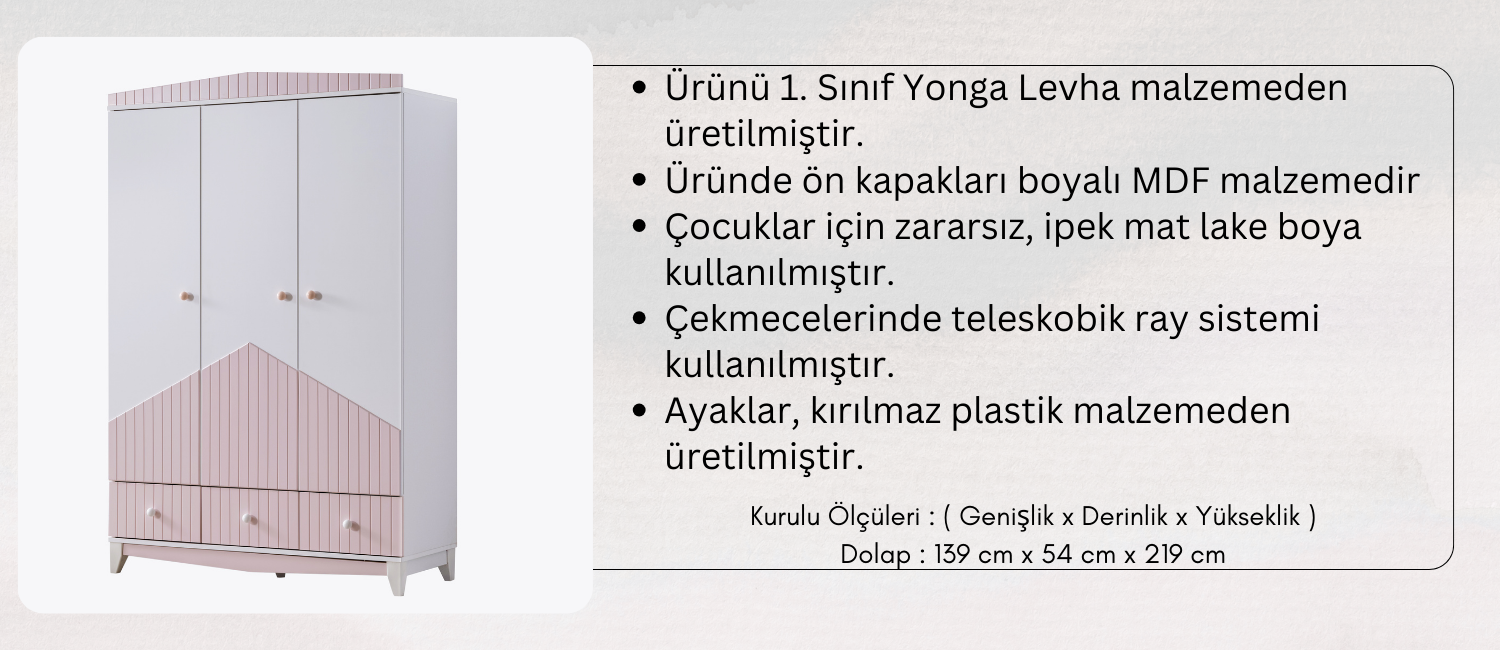 FETHİYE 3 KAPAKLI ÇEKMECELİ DOLAP