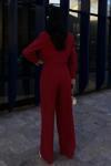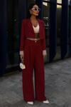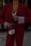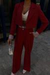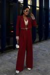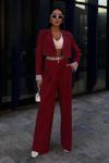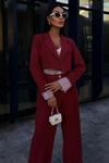 Zarif bordo rengiyle dikkat çeken Garni Detaylı Crop Ceketli Takım, şıklığı ve rahatlığı bir arada sunar.