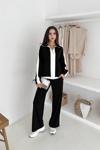 Ersefa Tarz Kadın Modern Moda Normal Bel Boru Paça Devrik Yaka Geniş Kalıp Balıkçı Yaka Triko Alt-Üst Takım