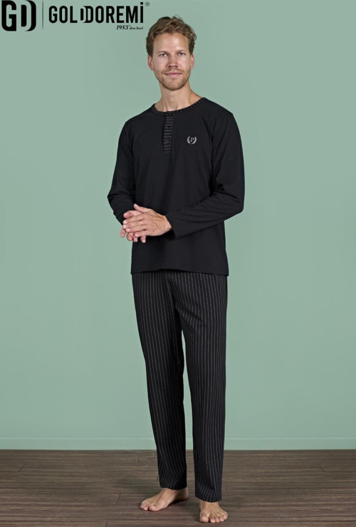 Gd Goldoremi Erkek Düğmeli Yaka Şerit Detaylı Düğmeli Yaka Uzun Kollu Pijama Takım