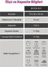 - En: 50 cm Boy: 75 cm Derinlik: 30 cm 3,8 kg 122 Lt