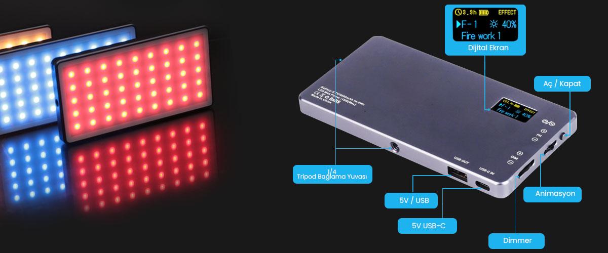 - 1 x Gdx CF-135 RGB Mini Mobil Video Işığı