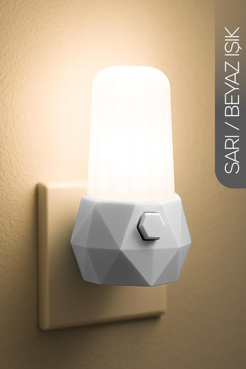 Telvesse Gece Lambası Prizma Tip 2 MOD Sarı-Beyaz Işık Tuşlu Koridor Hol Işığı Uyuma Işığı Beyaz GC07