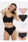 Gecko Collection Yokyok Gecko Toparlayıcı Lazer Kesim Dikişsiz Esnek Iz Yapmayan Iç Giyim 3 Lü Külot Siyah/Beyaz/Ten