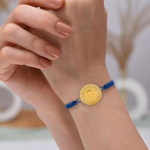 Ürün Adı : 22 Ayar Yeni Yarım Altın Mavi Renkli İpli Bileklik
