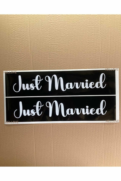 Gelin arabaları için plakaların üzerine yapıştırılan siyah folyo üzeri beyaz yazılı "Just Married" yazısıyla tasarlanmış düğün aracı süsü, standart plaka ölçüsünde ve 54x13 cm boyutlarında özel bir şıklık ve modernlik sunmaktadır.