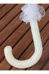 - Zarif dantel detaylarıyla süslenmiş, beyaz renkli dekoratif şemsiye, düğün ve gelinlik gibi özel günlerde şıklığınızı tamamlar