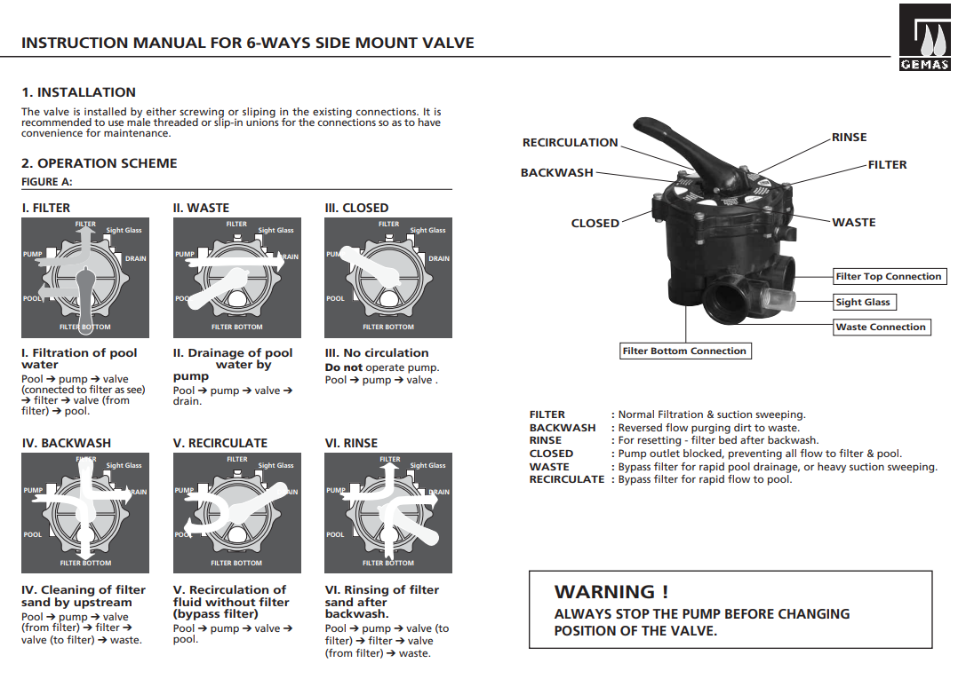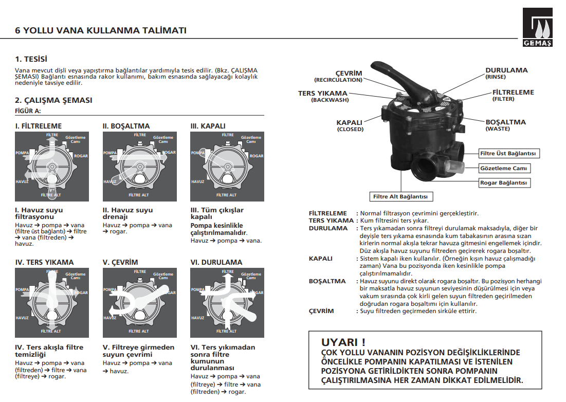 Filtrasyon sisteminde bosaltma , arıtma , durulama ve Kapatma fonksiyonların gerçekleşebilmesi için suya yön veren vanalardır.