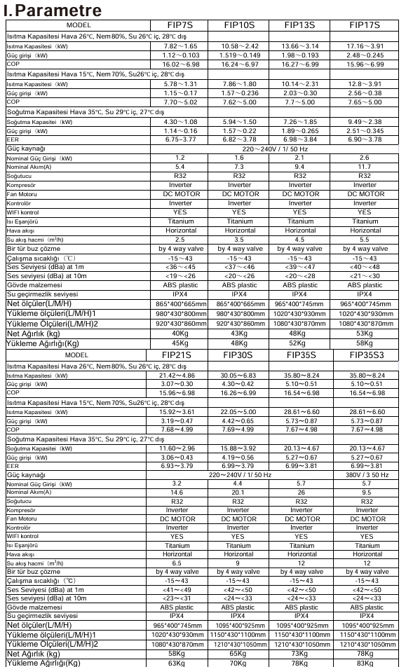 • Cihaz içerisindeki hava-su enerji geçisini sağlayan eşanjör titanyumdur.