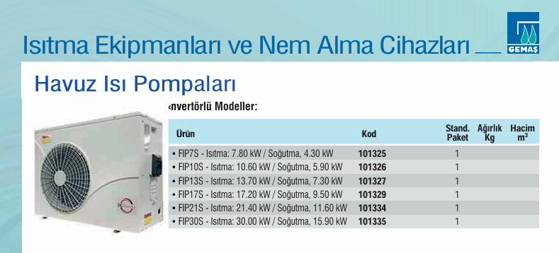 GEMAS Havuz Isı Pompası İnvertörlü - Isitma: 30.00 kW / Sogutma, 15,90 kW-ToptancıyızBiz