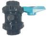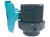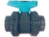 PVC Küresel Su Vanası, Küre baskı ayarlı, O-ringler EPDM, salmastra PP. ND 10. Patentli tasarım, Vana sapı ile rakor sıkabilme özelliği.