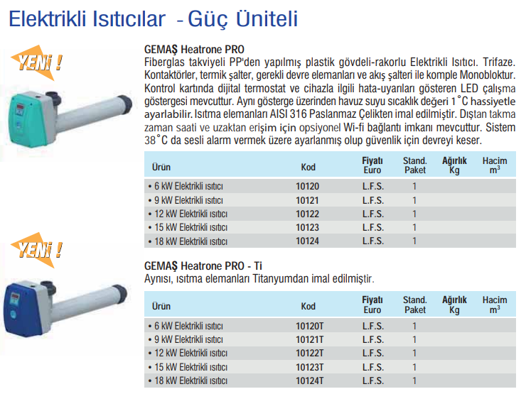 Tuz Klor Jeneratörü kullanan havuzlarda Titanyum rezistanslı ısıtıcılar tercih edilmelidir.