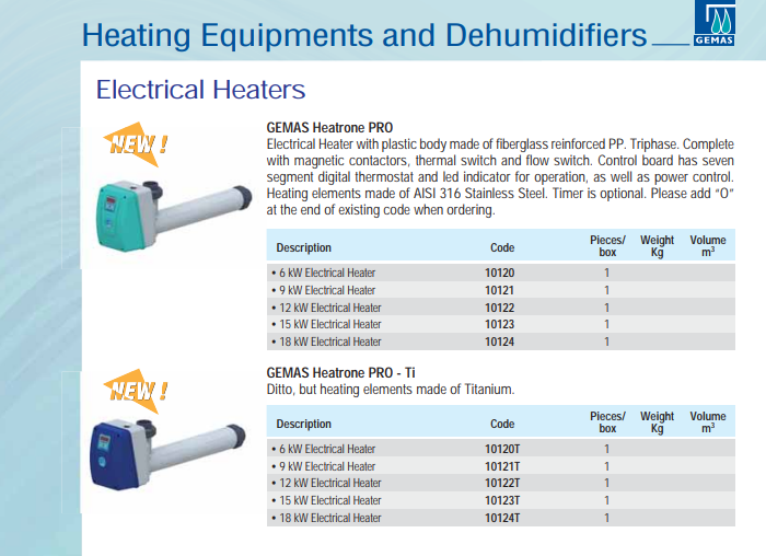 GEMAS Heatrone PRO Electrical Heater with plastic body made of fiberglass reinforced PP. Triphase.