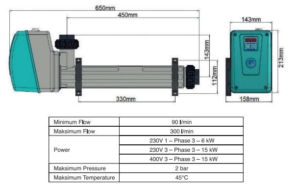 • 6kW, 9kW, 12kW, 15kW ve 18kW ısıtma kapasiteli modeller