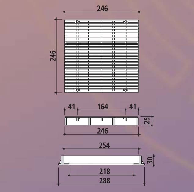 26,5 x 26,5 cm (dış) ebadında beyaz ABS’den mamul, sabitleme vidaları ile komple