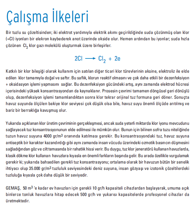Gemaş tuz klor jeneratörleri kullanan havuzlar daha az havuz kimyasalı kulanım ve daha az bakım gerektirir.
